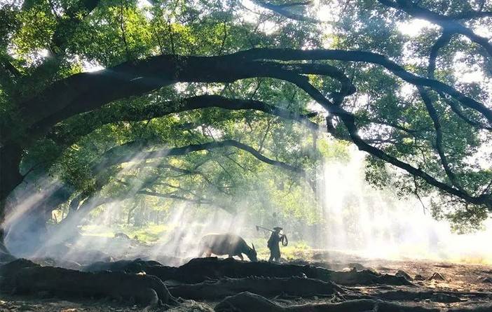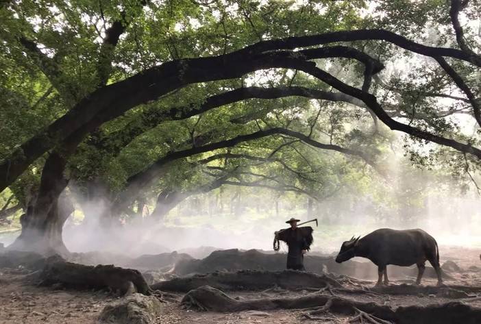 我就曾多次看到过榕树下牧归的一对老人牵牛