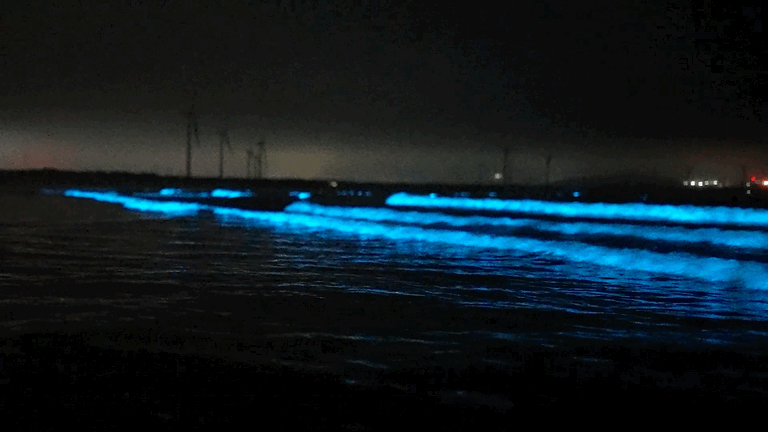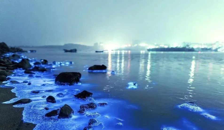 小岛的海滩上会泛起星星点点的蓝光