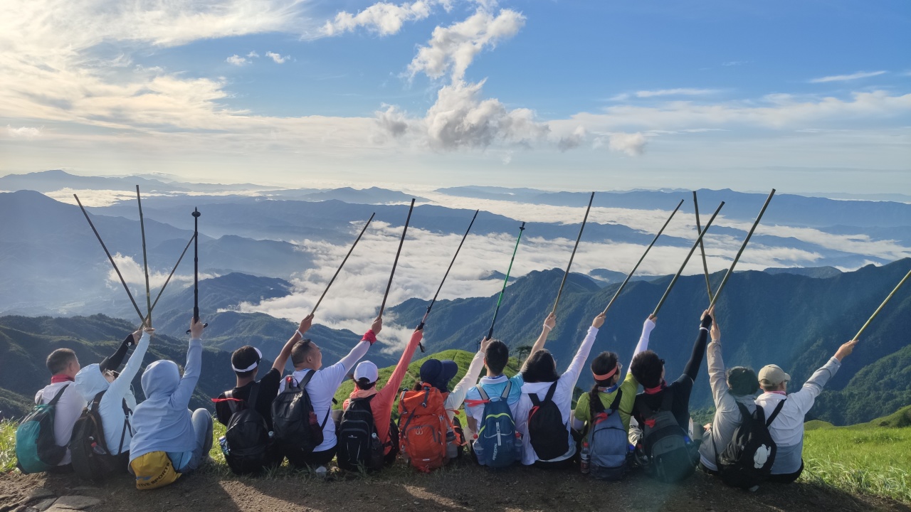 7:30出发前我们吃好早餐。乘车前往龙山村出发,开始登山。大家整理好背包,调整好状态。今天我们将经过发云界和风车口。