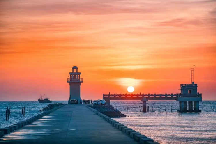 傍晚前往【放坡村】海边拍牛车赶海、灯塔日落。放坡村一带的海滩结实得可以跑汽车,于是充气轱辘的牛车是当地渔民往来岸上和海上渔船的主要运输和交通工具。渔民用牛车可以方便地将渔船所需网具等用品运到海里装上渔船,将渔获或需修补的网具等拉上岸,甚至可以作为人员来往渔船的交通工具,非常独特的人文景观。拍摄完成前往徐闻县城入住。