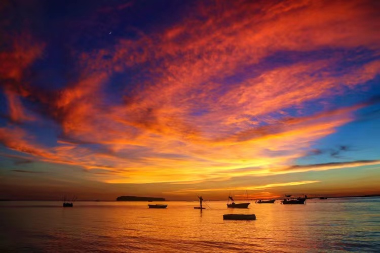 来到海边,租个吊床(或者自己带个吊床)尽享最美海平面日出、日落。