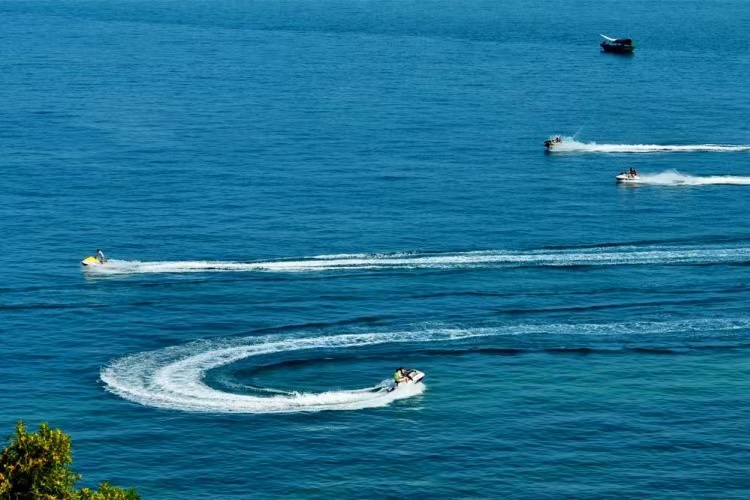 到海边游玩各种项目;摩托艇、快艇、潜水、捉螃蟹、捡贝壳等