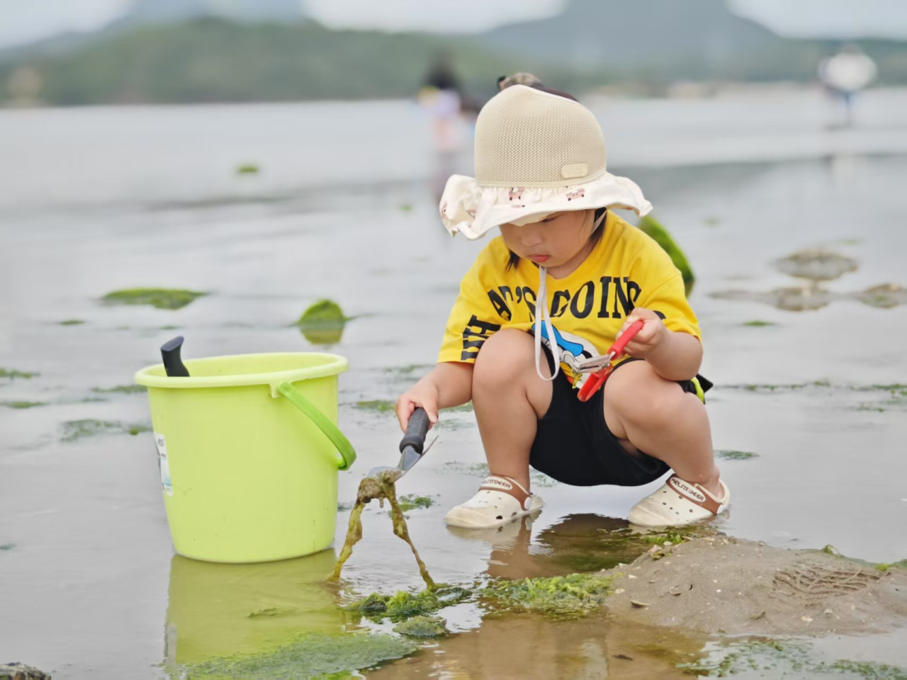 赶海:巽寮湾的原生乐趣体验,退潮后的滩涂藏着花甲、蛏子等海味,租借工具便能开启“寻宝之旅”。踩着细软沙滩,弯腰捡拾海鲜,感受海风拂面,亲手收获的海味还能成为晚餐的美味食材,是亲近大海的绝佳方式。