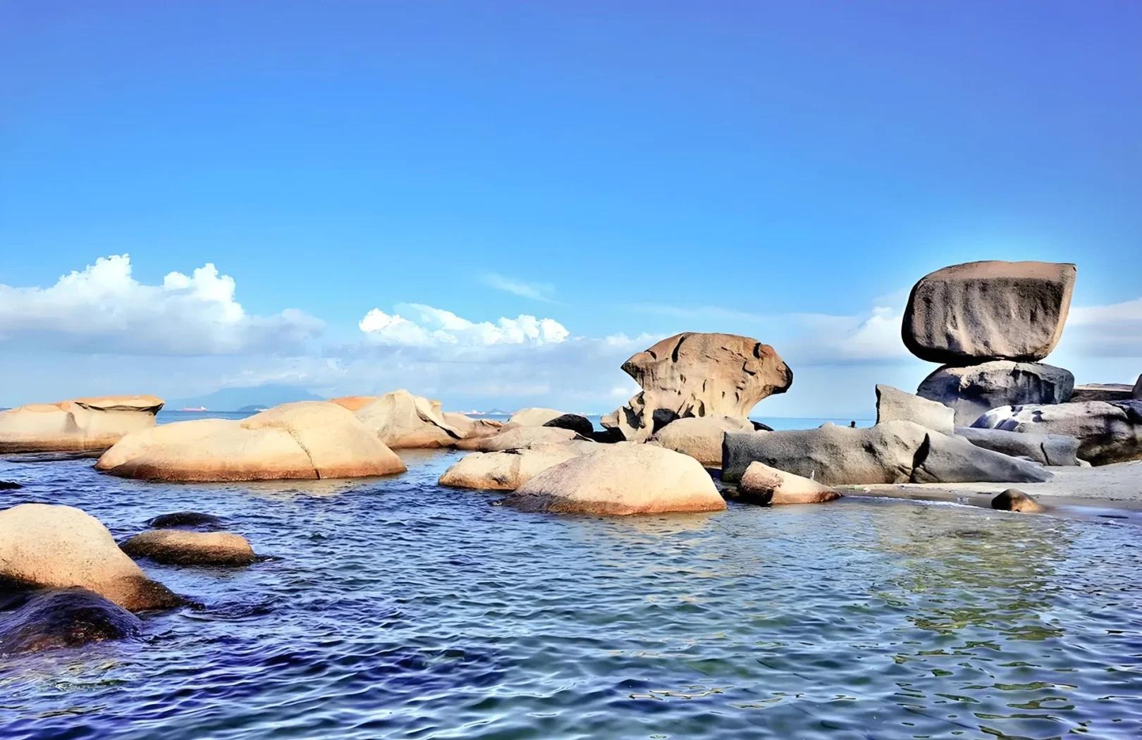 磨子石公园:巽寮湾的“奇石秘境”,海边遍布奇形怪状的巨石,经海浪亿万年侵蚀形成独特景观。沙滩干净细腻,海水清澈见底,既可在礁石间漫步拍照,也能静坐欣赏海浪拍击岩石的壮观景象,是观赏日出日落的绝佳地点 。