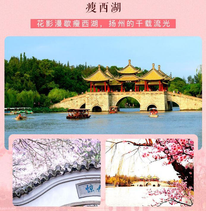 上午|早餐后,乘车前往扬州去瘦西湖游玩,江南水乡下的瘦西湖让你流连忘返。