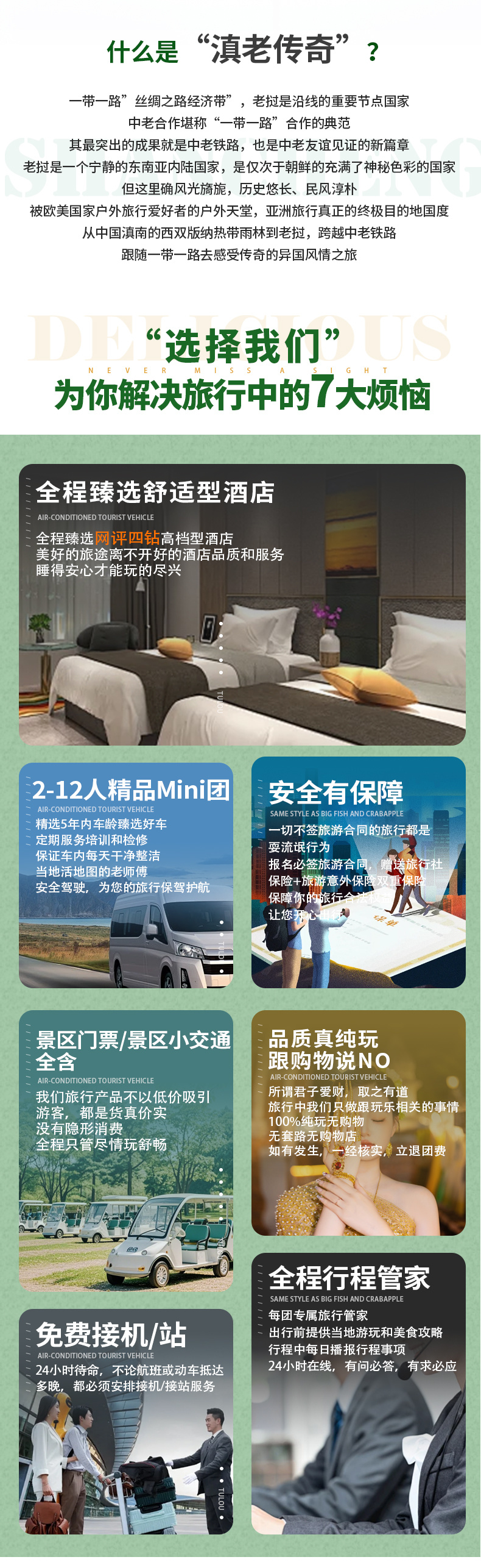 5、管家:国内全陪旅行管家全程陪同+老挝当地导游助手。