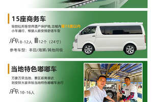 ⑤本产品根据人数安排车辆,不指定车型,若客人指定车型,需加收相应车费。