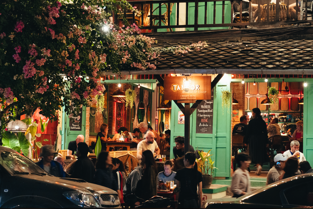 入住后前往湄公河码头,【乘船畅游湄公河】欣赏岸风光,听听音乐,感受老挝的慢生活。我们乘坐特色游船,穿梭于湄公河上,欣赏两岸的琅勃拉邦独特建筑,享受旅行的闲霞时光。晚餐建议在游船上吃,可以欣赏醉美日落和湄公河两岸的迷人夜景,还能欣赏老挝姑娘欢歌载舞哟。体验完湄公河游船后前往琅勃拉邦古城,漫步【法国街夜市】,每当夜幕降临,华灯初上,原本白天清闲的街道,转眼间变得热闹非凡,各种夜市赶摆不仅热闹非凡,琳琅满目,且物美价廉,人间烟火最抚凡人心。