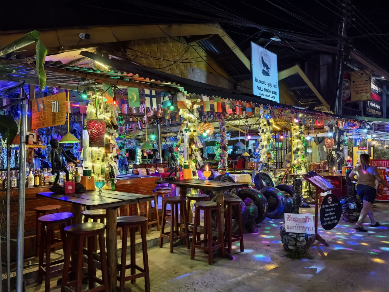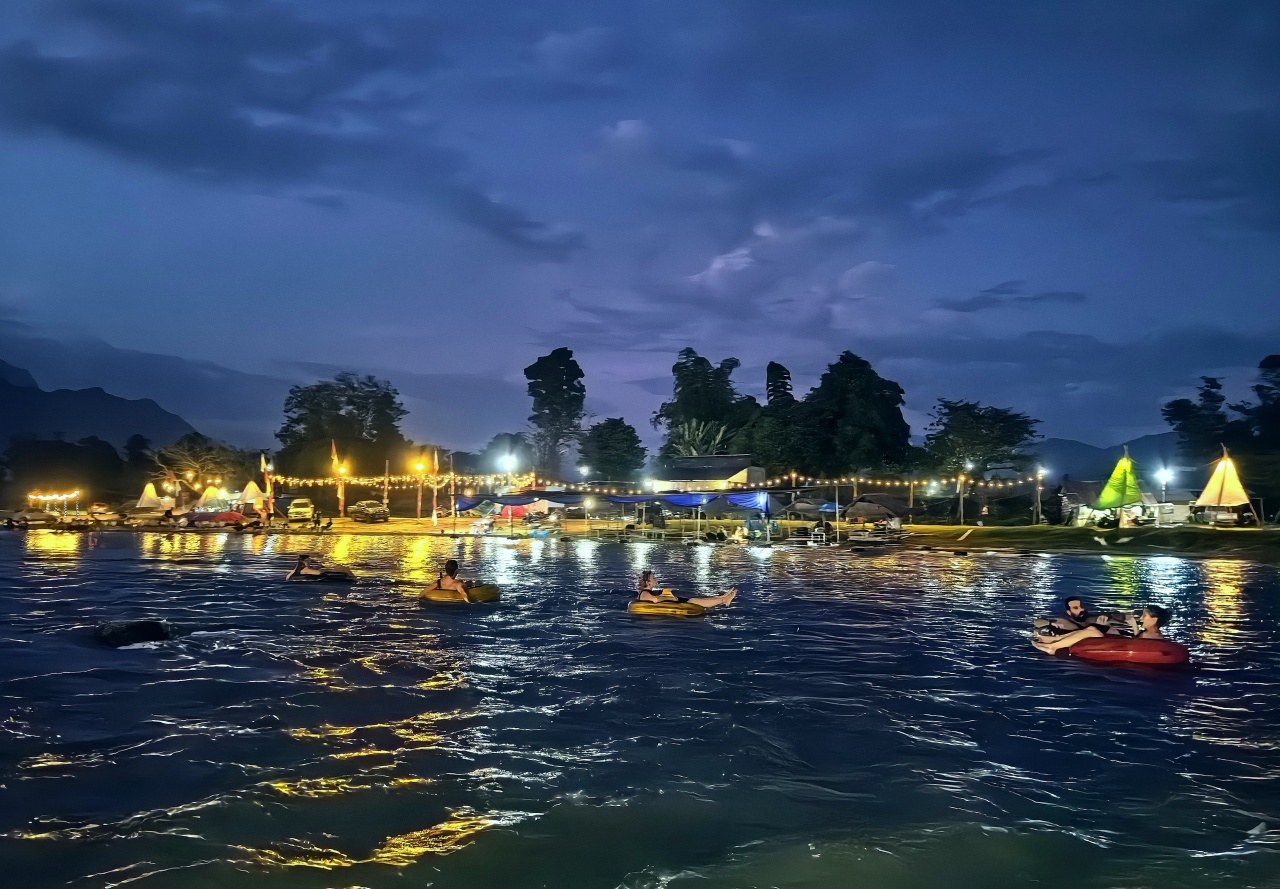 随后返回酒店,晚餐可以前往南松河边,有很多不错的老挝特色餐馆,景色相当不错。晚餐后体验【万荣酒吧街区】老挝狂欢派对,各种风格酒吧、各国特色餐厅琳琅满目,其乐无穷,吸引着无数欧美青年背包客在此相聚。