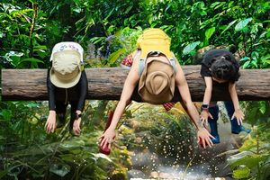 酒店用早餐后出发,乘车前往热带雨林徒步,约1小时抵达【热带雨林探秘】集合点。随后由今天的雨林向导为大家讲述注意事项,做热身活动,随后跟随当地向导,进入雨林步道,切身感受原始森林的神秘,认识雨林内的奇花异草。午餐我们将在原始森林内,体验一次别具一格的【雨林宴】。在热带地区,有一种特别的餐食叫—绿叶宴。沿袭当地丛林先民曾经在丛林用餐的简易且环保的方式,用芭蕉叶等绿色的叶子包裹食物。继续探索雨林,行走在雨林之中,一切都显得无比奇妙,还可以体验【石头画脸】,【丛林大秋千】,【探寻丛林生物】等等丛林体验活动。今天我们就来一探究竟,亲自去体验这一神奇的雨林。跟着向导穿梭于雨林,这里的树木高大茂密一边走辨认路边的奇妙动植物。这是一堂活生生的户外生物课。