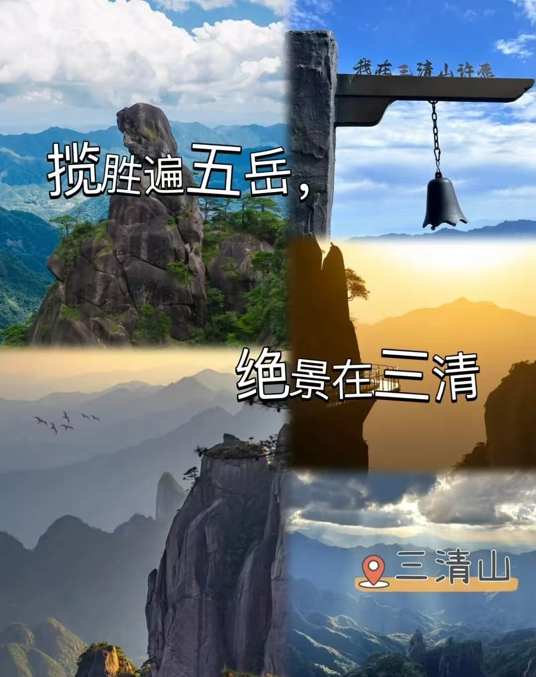 早餐后集合去游览世界自然遗产、国家5A级风景区--水墨丹青•三清山;三清山高空栈道共有3600余米,无拾级之虞,其状如覆平川,脚底云海翻腾,远眺群峰皆伏趾下,实乃人间仙境,游【西海岸景区】:神童负松、山盟海誓、西霞港、西海港湾、观音送子、仙桥墩、妈祖导航飞仙谷、翡翠谷、猴王观宝、母子松葫芦湾,西海岸有四大奇观:高空栈道、云海、大峡谷、古树名木群;漫步在海, 当你站在栈道上俯瞰大峡谷,也是一种难得的体验,游览【阳光海岸】,栈道架设在平均海拔1600米的高空悬崖峭壁之上,不仅可以欣赏到三清山东部雄浑壮阔的日出云海、高山石林、高山瀑布等景致,而且还能感受到三清山人与自然和谐相处、完美统一的意境。游流霞台、自然景观精华荟萃地--【南清园景区】,赏神龙戏松、一线天、玉女开怀、十里杜鹃林、司春女神、巨蟒出山、天狗望月、仙苑秀峰、葛洪献丹、玉兔奔月等景观,索道下山,吸引着八方游客和摄影师流连忘返。