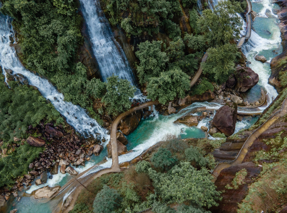 想和你一起沉醉在望仙谷,悬崖对岸的瀑布,或如白练垂空,或如银缎挂壁,为深邃的峡谷增添了一丝空灵与静谧。与白鹤崖相映,一秒让人梦回仙侠。