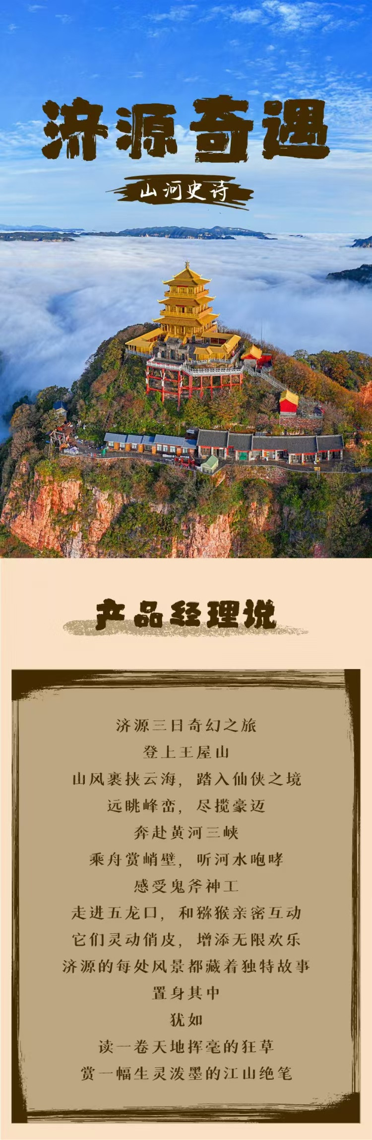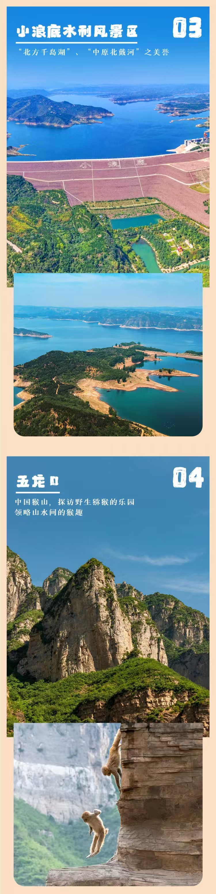 早餐后,前往“中国猴山”【五龙口】,原称秦渠枋口,因秦代在此开山凿渠,以枋木为闸而得名。这里沁河截山而出,两岸断壁如削,幽谷碧波荡漾,景色十分迷人。除此之外,这里还是猕猴自然保护区,野生猕猴的乐园。在这片绿意盎然的山林中,生活着3800多只活泼可爱的太行野生猕猴。它们在山间自由穿梭,与自然和谐共处。在这里,你还可以欣赏到猴子们精彩的表演,如骑自行车、打篮球等,让人捧腹大笑。