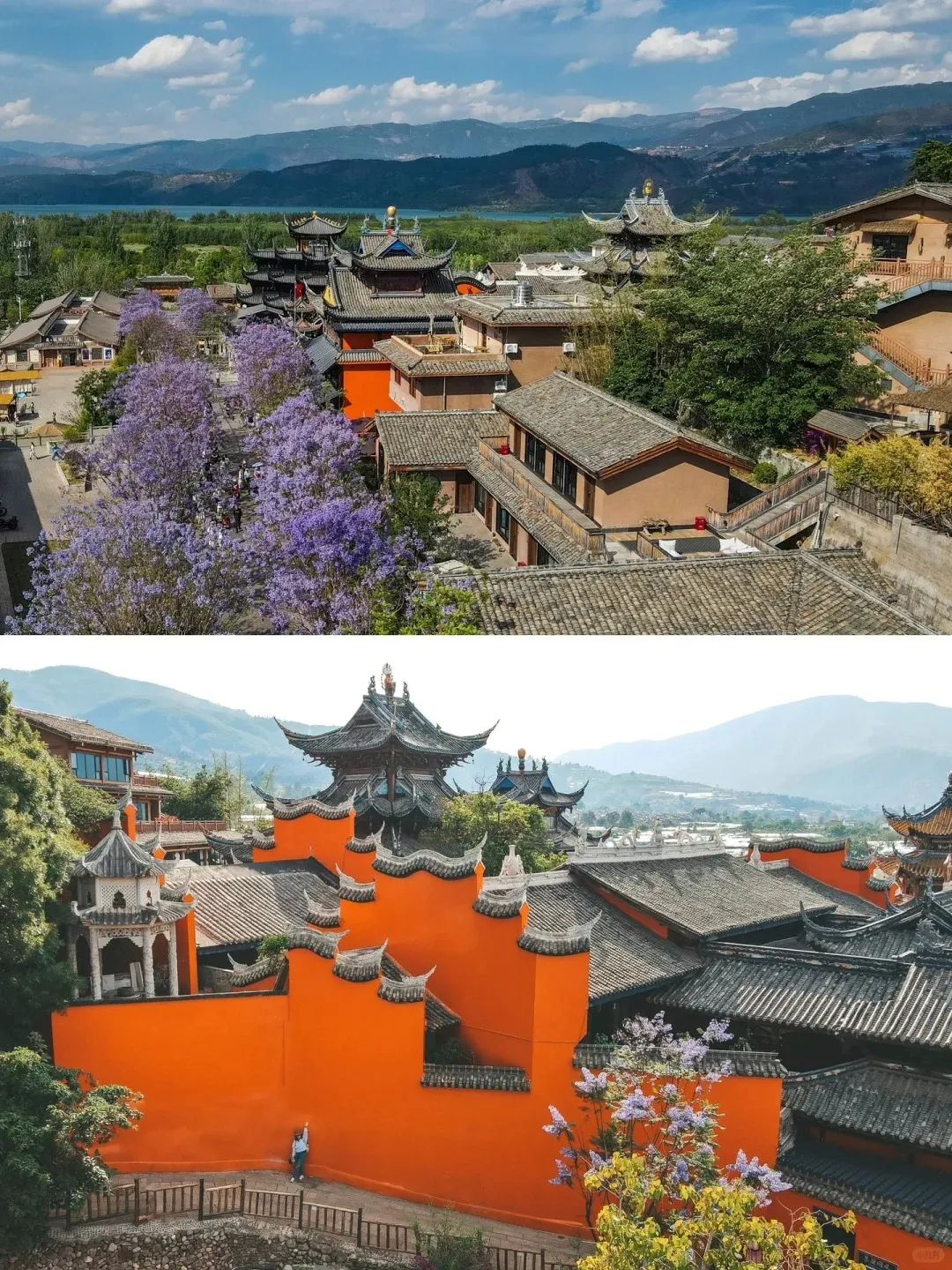 早上酒店早餐后开车前往邛海,邛海很大,是四川省第二大淡水湖。我们来到【大石板村】,大石板村背靠螺髻山,三面环山,面向邛海,风景秀丽,是古代“南方丝绸之路”和茶马古道的重镇和驿站。村里拥有500多年历史的灵鹰寺,以其皇宫式建筑风格和玺式彩画著,非常出彩的橙色墙,超级有民族特色。漫步在石板小径上,感受岁月的痕迹,适时前往【西昌蓝花楹】,西昌市航天北路街道上,大批的蓝花楹开始怒放,一条条街道被浪漫的紫色花海“攻陷”,成为名副其实的“网红打卡地”,圈粉无数。航天北路最为茂盛和壮观,吸引众多游客慕名而来观赏和拍照,我们将与这里的“蓝花楹雨”来场浪漫邂逅。