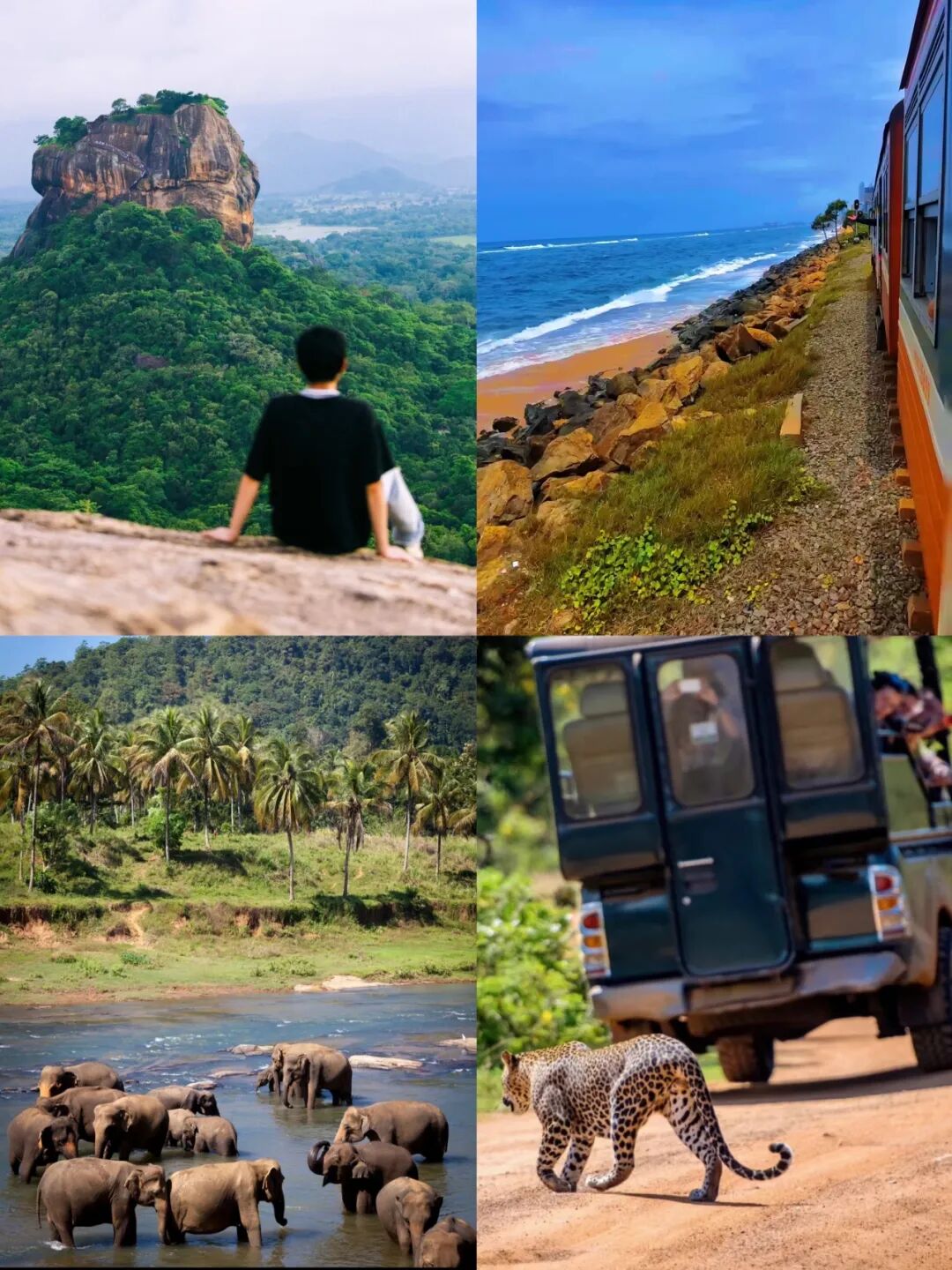 我们爬上世界第八大奇迹的狮子岩;乘坐宫崎骏动漫里的海上火车,在雅拉国家公园,“小肯尼亚”,坐吉普车追猎豹、大象,到中部山区的大象孤儿院,看小象们在溪水中嬉戏打滚。