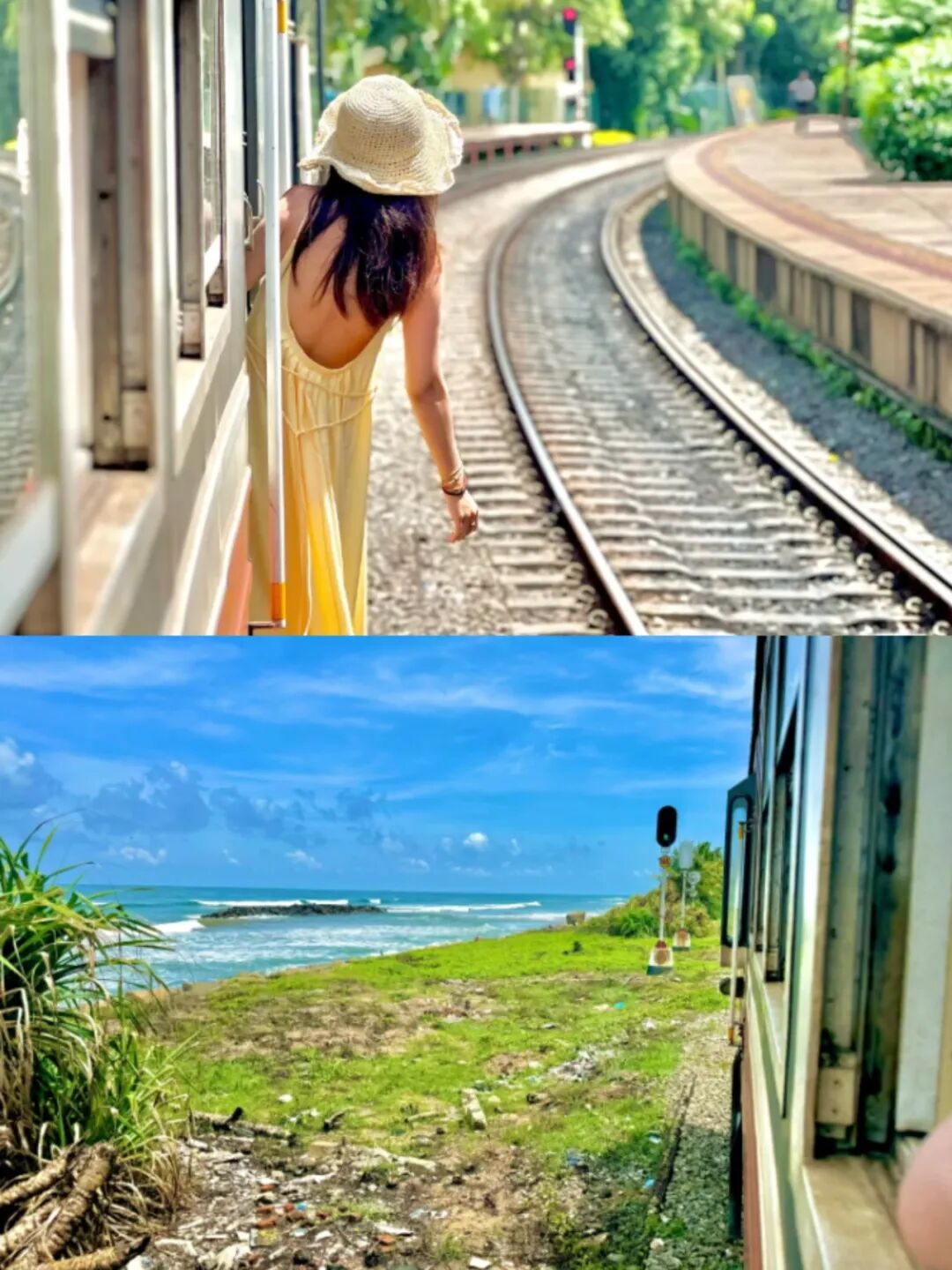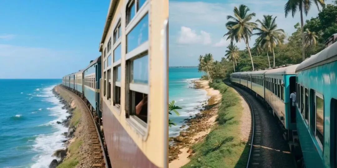 车窗外就是茫茫印度洋 是科伦坡海上小火车的精华一段 火车贴着海岸线行驶 海浪拍打着铁轨 红色复古车厢在湛蓝海水间,这是千与千寻同款海上小火车。
