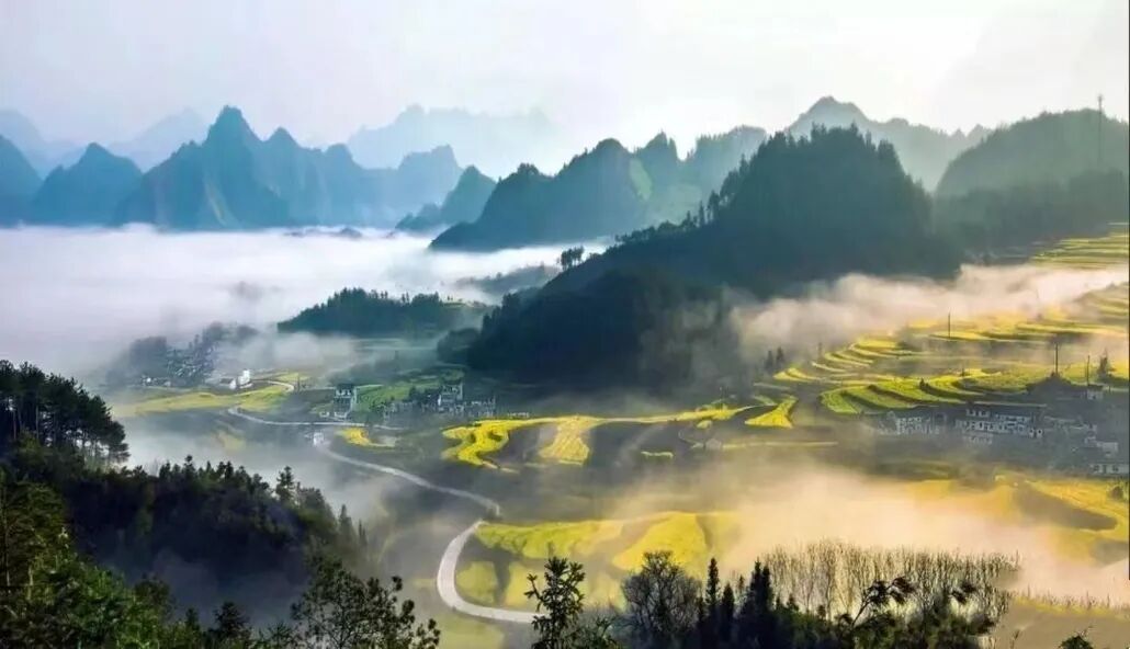 青山绿水,云雾萦绕,自然风光绝佳