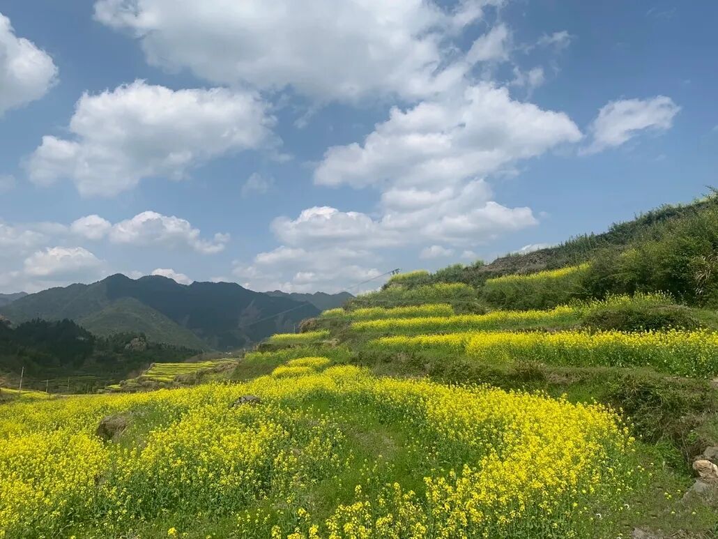 2. 花期:梅干岭清明正值盛花;古道沿途村庄也有小片油菜花